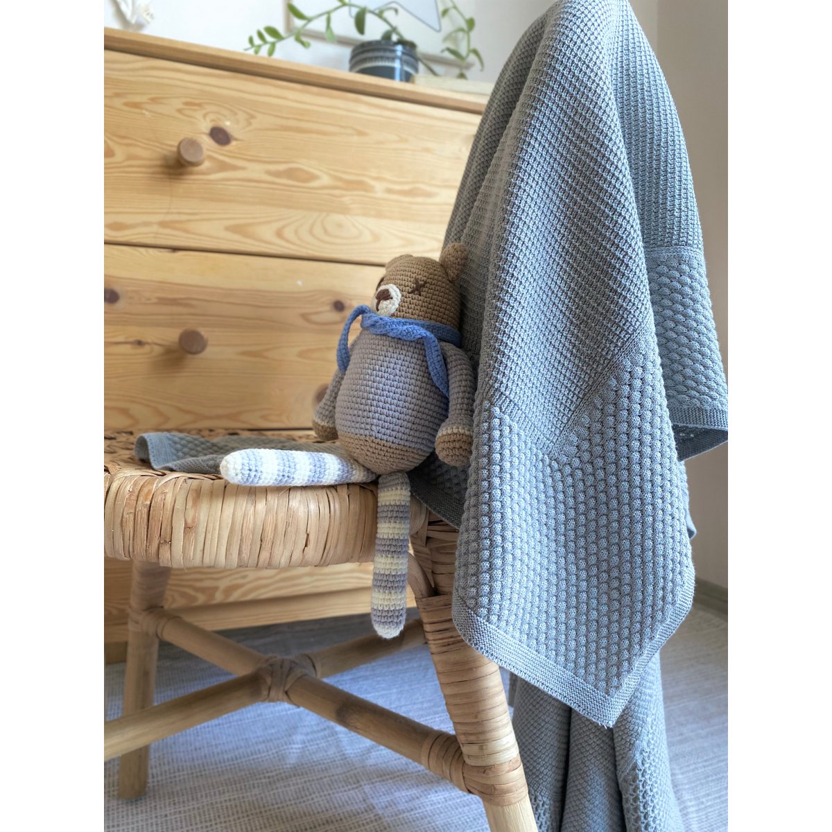 Deze prachtige gebreide deken is gemaakt van 100% katoenen garen en vormt een tijdloze aanvulling op elke babyuitzet. Dankzij de ademende stof is deze deken perfect voor gebruik in de lente, zomer en herfst. Het subtiele grijs geeft een rustgevende, genderneutrale look en past bij elk interieur.