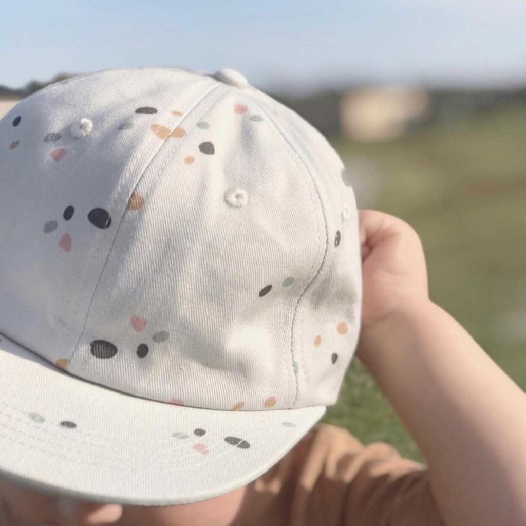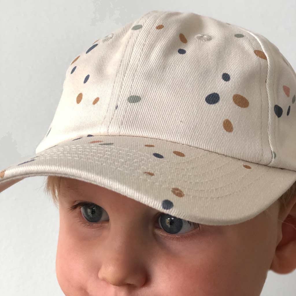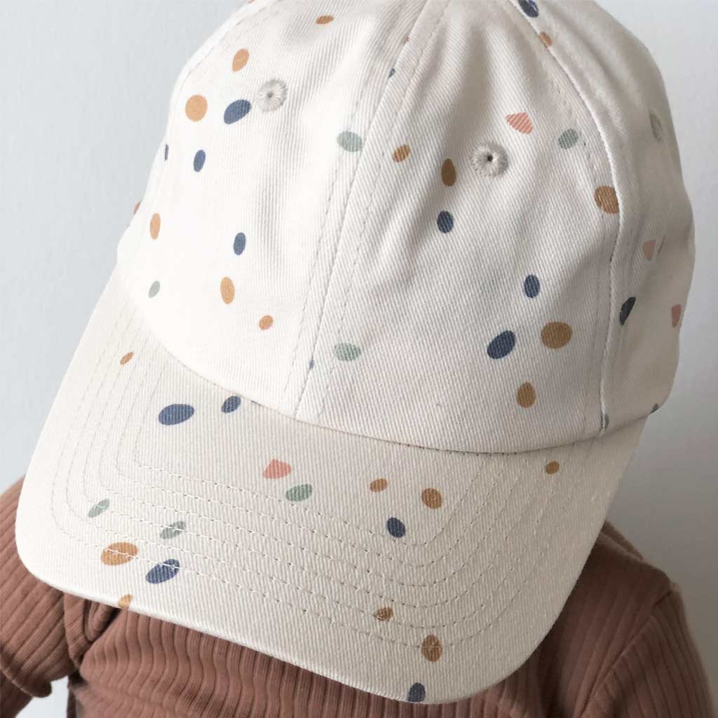 De speelse stippenprint geeft de pet een zachte, vrolijke uitstraling die makkelijk te combineren is met elke outfit.